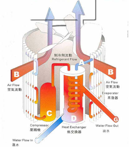 Air source water heater making use of high efficiency environment protected refrigerating liquid, can generate hot water up to 60°C. The heat efficiency can be over 380%, saving more energy by 80% comparing with ordinary water heater, 30% comparing with pipe transmitting gas in city, 20% comparing with fuel water heater. There is no poisonous gas, liquid or trash letting while running